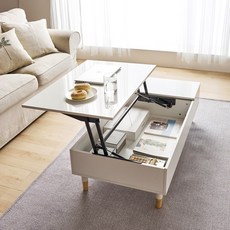월로덴 거실 리프트업 테이블 투톤 믹스 소파 테이블 높이 조절 테이블 V06, 화이트