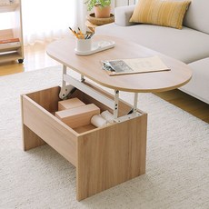 청사초롱 타원형 높이조절 리프트 테이블 서랍형 거실 소파 유압식 리프트업 쇼파 좌식 티 테이블 1200, 화이트