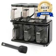모던 양념통 사각 세트, 양념통 430ml x 6p + 스푼 6p + 케이스, 1세트