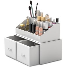 Readaeer 다용도 대형 화장품 정리함 세트, 화이트, 2단